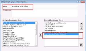 Now lets go to the Visual Studio, and create custom deployment configuration. I simply copy steps from default configuration and then add step “Run PowerShell Script”: