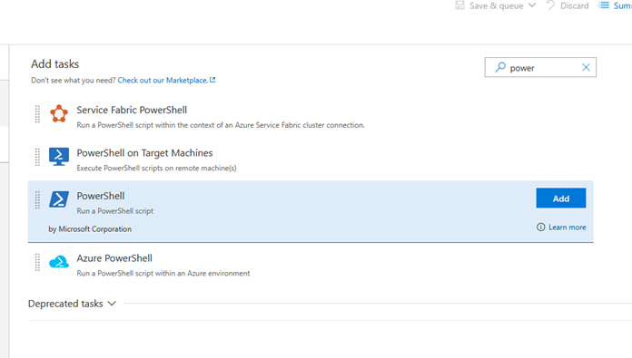 Add a new PowerShell task: