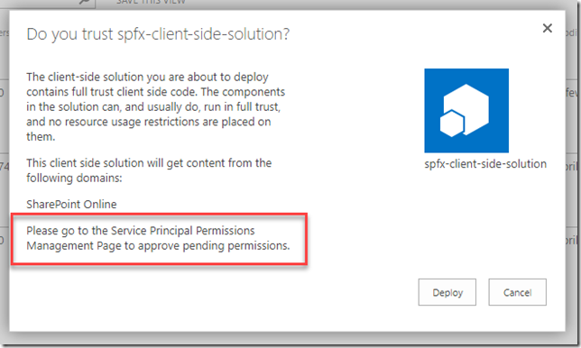 Before testing our web part, we need to deploy it and approve our web api request. This can be achieved in a few steps:
