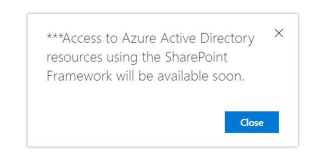 Access to Azure Active Directory resources using the SharePoint Framework will be available soon.