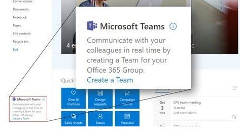 Probably you noticed at your modern Team sites a prompt in the left bottom corner, which asks if you want to create a Team for your group.