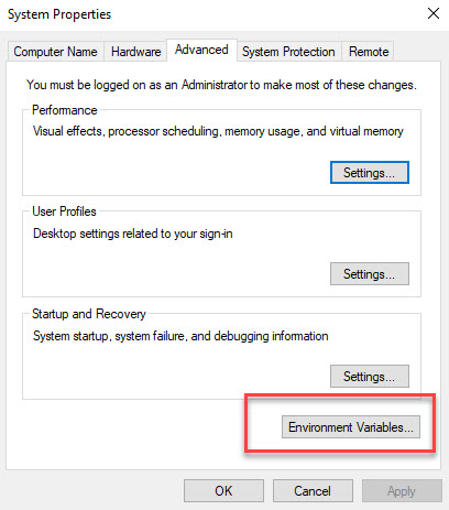 Click on Environment Variables: