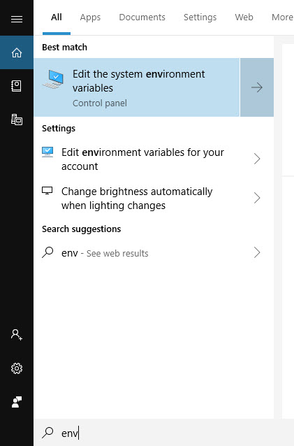 Open Edit the system environment variables dialog: