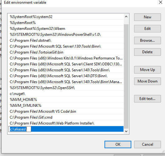 Click on New to create a new variable and insert a path to your folder, c:\Aliases in my case: