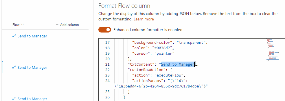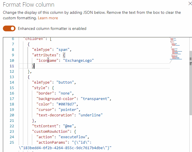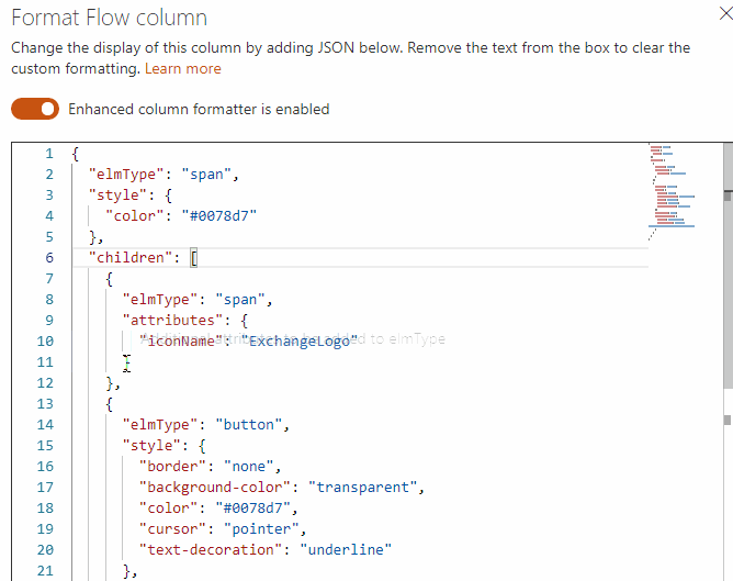 To apply formatting, you should enter a special JSON into the textarea on a SharePoint list page. There is one thing here which I don’t like very much. As a developer, I expect that column formatting experience provides code suggestions (also called intellisense in developer world), live preview, search and replace, brace matching and some other things available in a normal integrated development environment. You can partially improve the situation if you edit your formatting JSON in Visual Studio Code with custom JSON schema applied. However even in that case, if you want to see how your column formatting looks like in SharePoint, you have to copy-paste it into SharePoint and click Preview, which is inconvenient. Also, the schema in Visual Studio Code lacks some additional features available in SP Formatter.