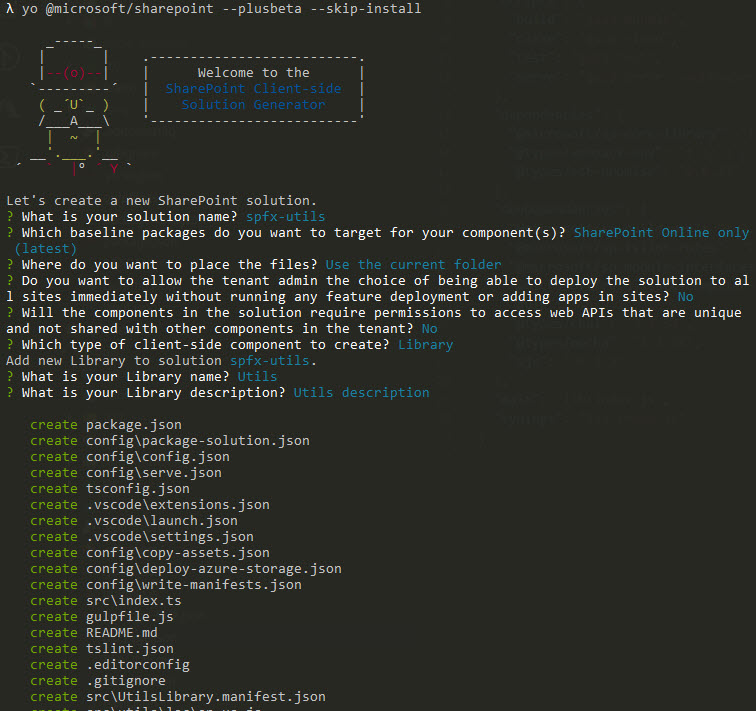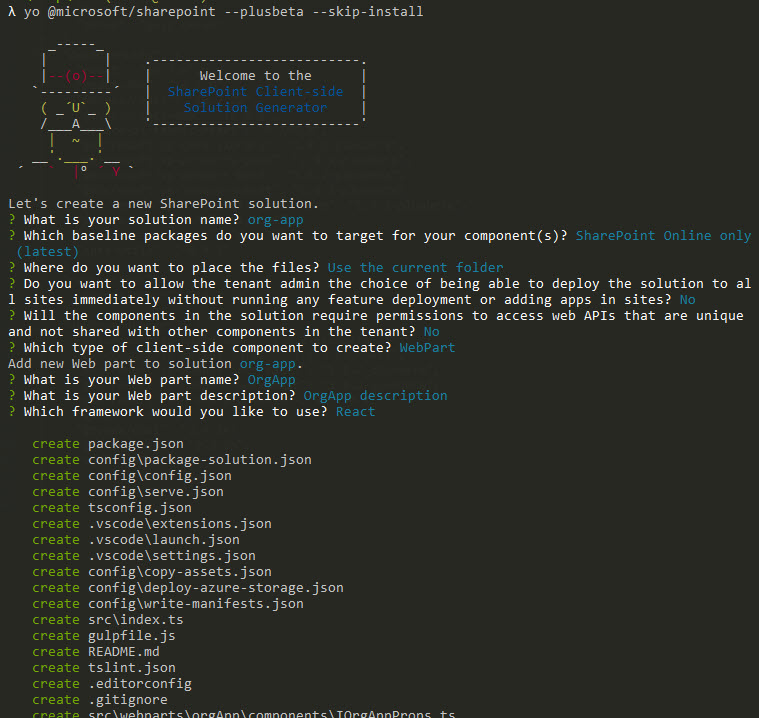 yo @microsoft/sharepoint --skip-install