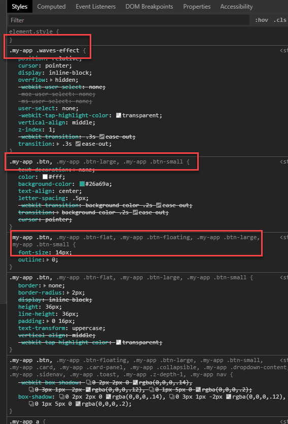 Now if you want to use materialize styles, simply add “my-app” css class to the parent element: