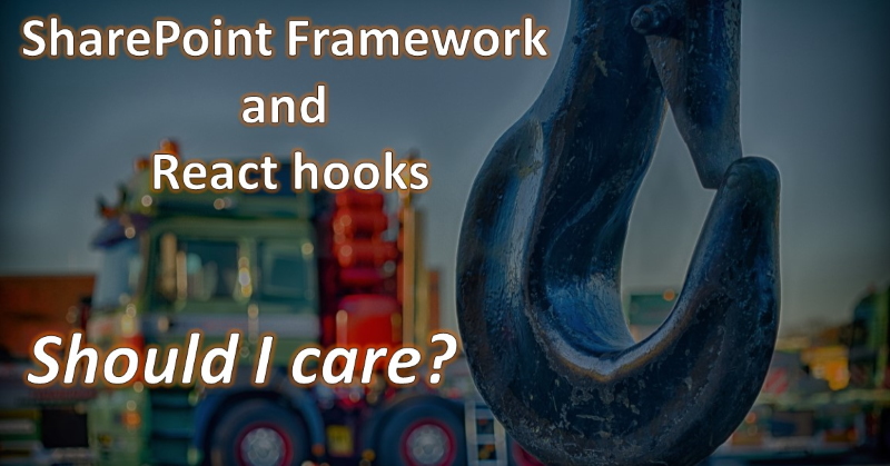 But what about SharePoint Framework? Your SharePoint Framework code will benefit from all the good things coming from React hooks I mentioned above. Additionally, you can write custom hooks in order to reuse or share some SharePoint Framework related functionality.
