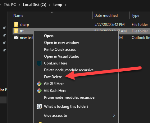 2. Create a .bat file fast-del.bat: