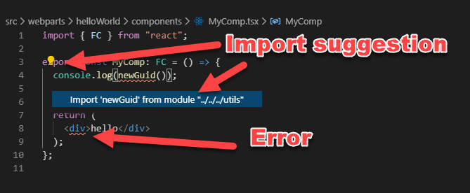 Sometimes, during regular SharePoint Framework development, you add new React components into your codebase. Sometimes VScode behaves very strangely and doesn’t provide you with needed error highlights and import suggestions.