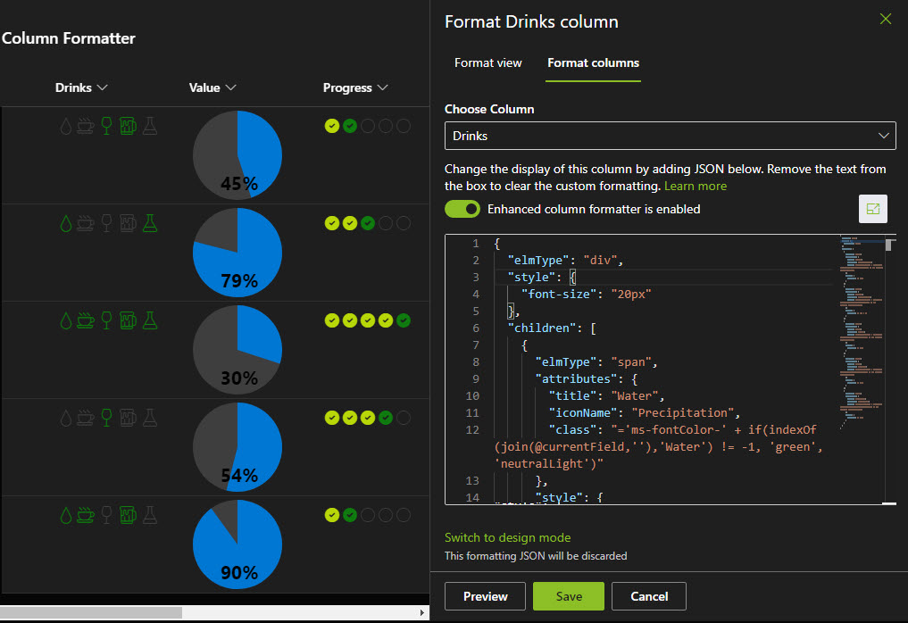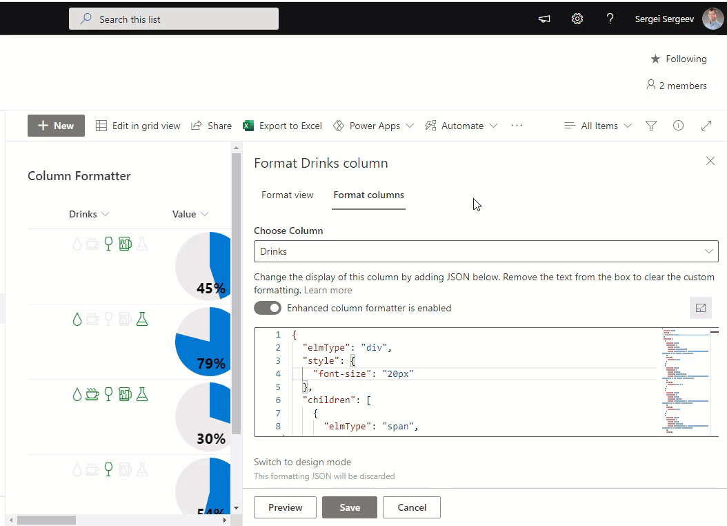 At the end of 2020, I worked on a bunch of new features for SP Formatter. SP Formatter is a web extension (supports Chrome and Edge), which transforms the out-of-the-box SharePoint Column (View) Formatting experience and makes JSON editing a lot more convenient. You can watch a short demonstration video on youtube here. This post covers changes I added in some details.