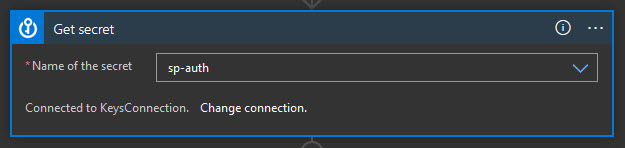 Give the connection a name, provide a vault name (in my case it will be “sp-keys”). Then in a dropdown select a secret - the name should be the same, as your certificate. In my case, it’s “sp-auth”.