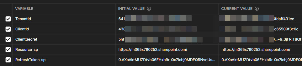 How it works - we check that an access token is valid. If not, we use a refresh token to obtain a new access token. The refresh token is stored inside the “RefreshToken_sp” variable (we saved it on the previous step). The new access token and refresh token are then saved to the environment variable.